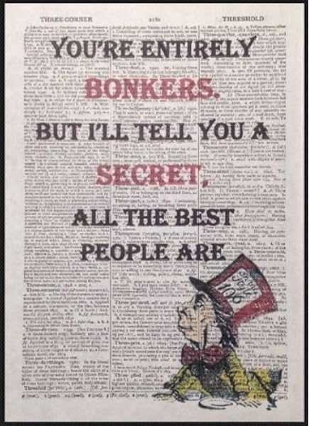 A crazy, mad, wonderful idea. 'but this is impossible.' the mad hatter: Of all the alice in wonderland quotes, this one speaks to me the most.