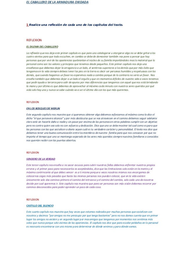 Situar la mirada en el propio ego, en lo que hicimos ayer o haremos mañana, oxida aún más nuestras armaduras. Resumen de los capitulos y caracteristicas de los personajes. This is caballero armadura oxidada by worldof on vimeo, the home for high quality videos and the people who love them. Explique por qué en ambos casos se trata deuso metafórico.