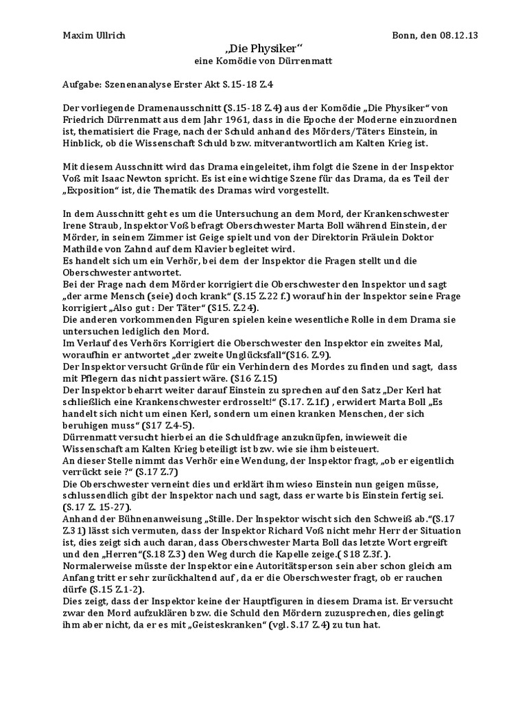 In dem drama „die physiker anderen figuren gegenüber verhält sie sich unterschiedlich. Der schweizer ist auch lange nach seiner zeit. Das gespräch zwischen dem inspektor voß und oberschwester marta boll ist der erste teil des.